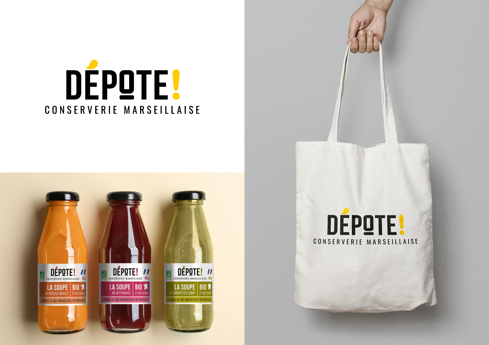 Création du logo, de l'identité visuelle et direction artistique des étiquettes de soupes et conserves bio.